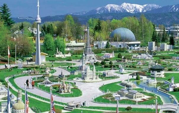 „Eine winzige Welt am Ufer des Wörthsees.“ Der Miniaturspielplatz von Klagenfurt ist das beliebteste Ziel am See. Nicht nur Österreich, sondern auch eine verkleinerte Nachbildung den berühmtesten Gebäuden der Welt kann bewundert werden (Verhältnis 1:25). Dazu gehören die Freiheitsstatue in New York, der Eiffelturm in Paris, der Tower of London und das Taj Mahal in Indien.